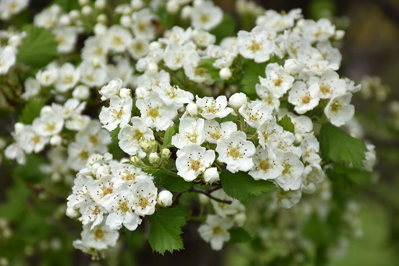 Snowbird Hawthorn is draped in stunning clusters of double white flowers held atop the branches in mid spring. It has forest green deciduous foliage. The serrated lobed leaves do not develop any appreciable fall colour.