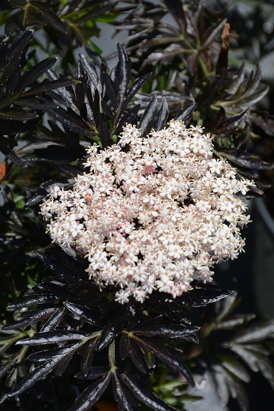 Laced Up® Elder features showy clusters of fragrant shell pink flowers held atop the branches in early summer, which emerge from distinctive rose flower buds. It has attractive black deciduous foliage which emerges burgundy in spring. The serrated compound leaves are highly ornamental but do not develop any appreciable fall colour. The black fruits are held in clusters in early fall.