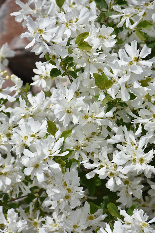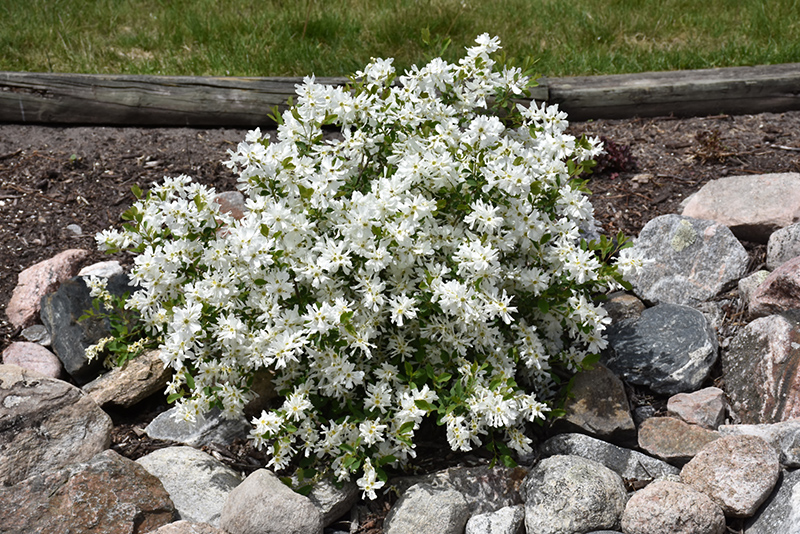 Lotus Moon™ Pearlbush will grow to be about 5 feet tall at maturity, with a spread of 4 feet. It tends to fill out right to the ground and therefore doesn't necessarily require facer plants in front, and is suitable for planting under power lines. It grows at a medium rate, and under ideal conditions can be expected to live for approximately 30 years.