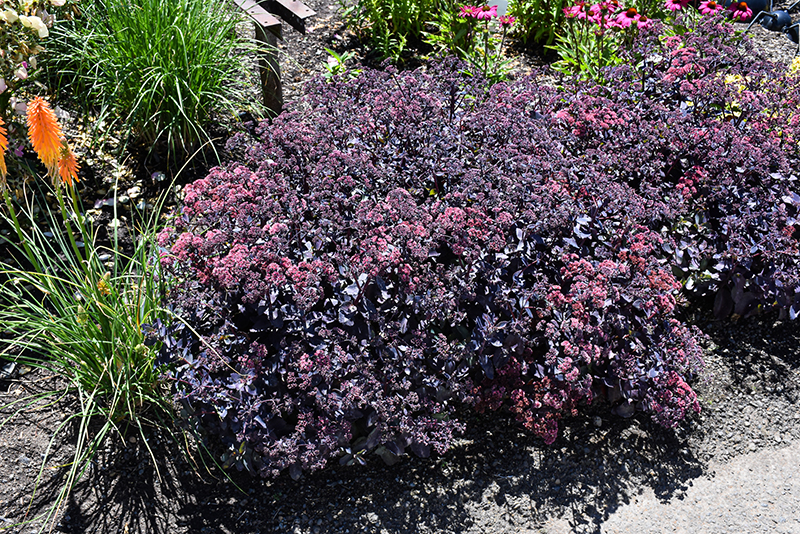 Cherry Truffle Stonecrop will grow to be about 14 inches tall at maturity, with a spread of 24 inches. When grown in masses or used as a bedding plant, individual plants should be spaced approximately 18 inches apart. Its foliage tends to remain dense right to the ground, not requiring facer plants in front. It grows at a fast rate, and under ideal conditions can be expected to live for approximately 15 years. As an herbaceous perennial, this plant will usually die back to the crown each winter, and will regrow from the base each spring. Be careful not to disturb the crown in late winter when it may not be readily seen!